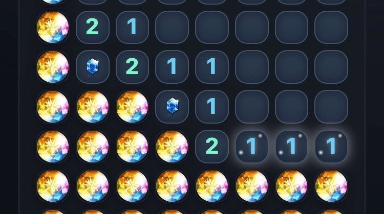 接する8マスに【New】が存在する場合は数値に光が纏っている状態になります、光纏を参考にして【New】を探すことが可能です。