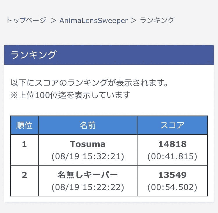 ただし、アニマレンズをタップした場合はゲームオーバーとなりスコアは0点になります。