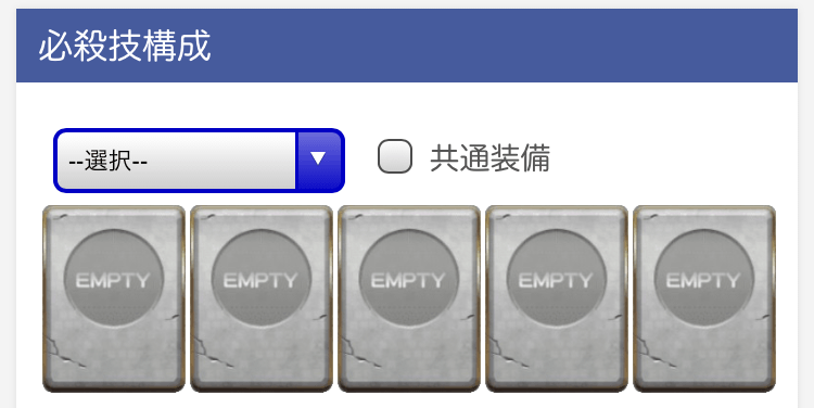 共通必殺技を指定したい場合にはキャラクター名の横の「共通装備」にチェックをつけると一覧に共通装備も含めて表示されます。