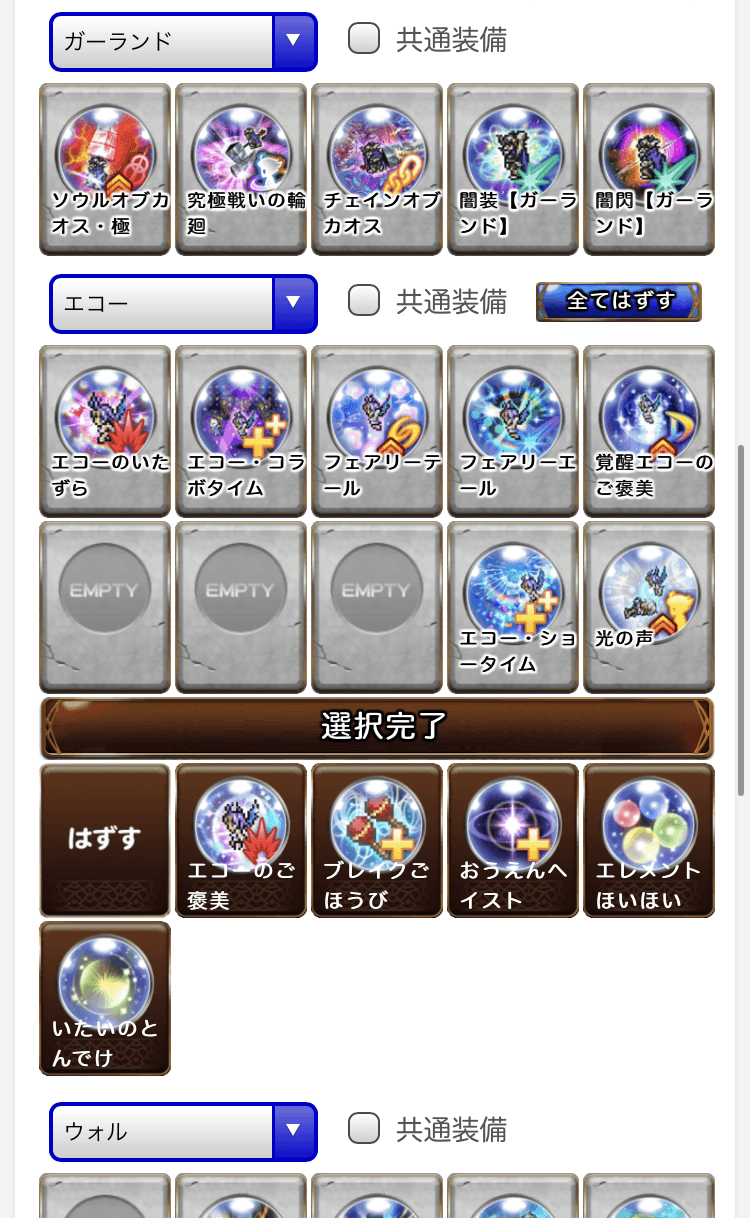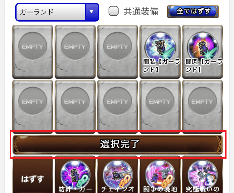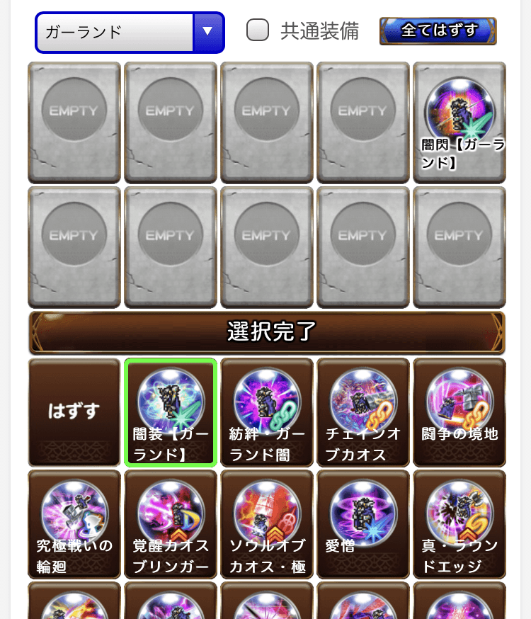 ※注意:共通装備をチェックする・外すと選択は初期化されます