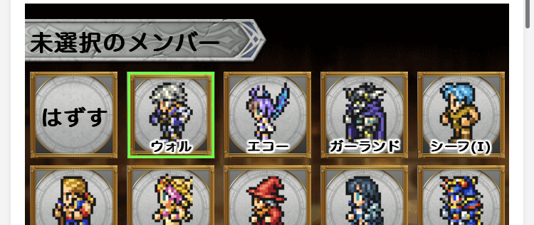 下段の未選択のメンバーのキャラクター一覧から設定したいキャラクターのアイコンをタップして