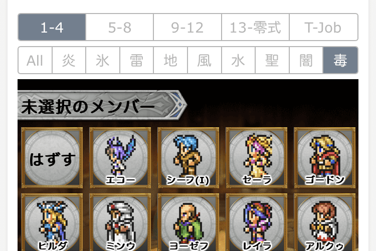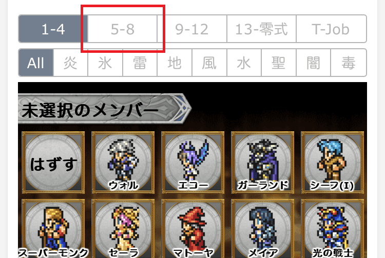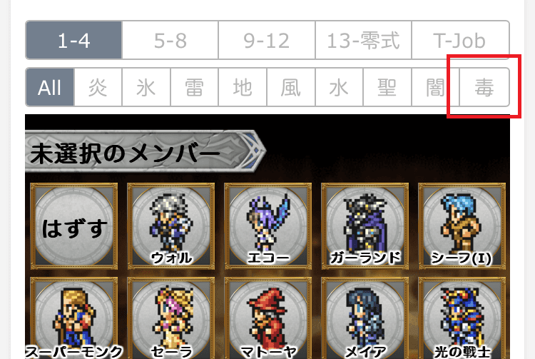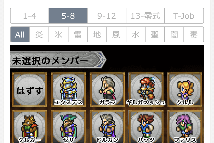 ※サポーターやヒーラーに該当するキャラはどの属性を選択した場合でも表示されます