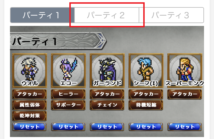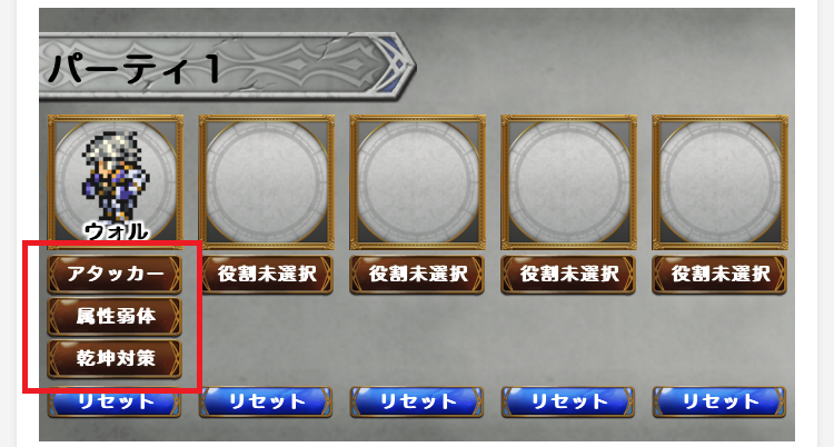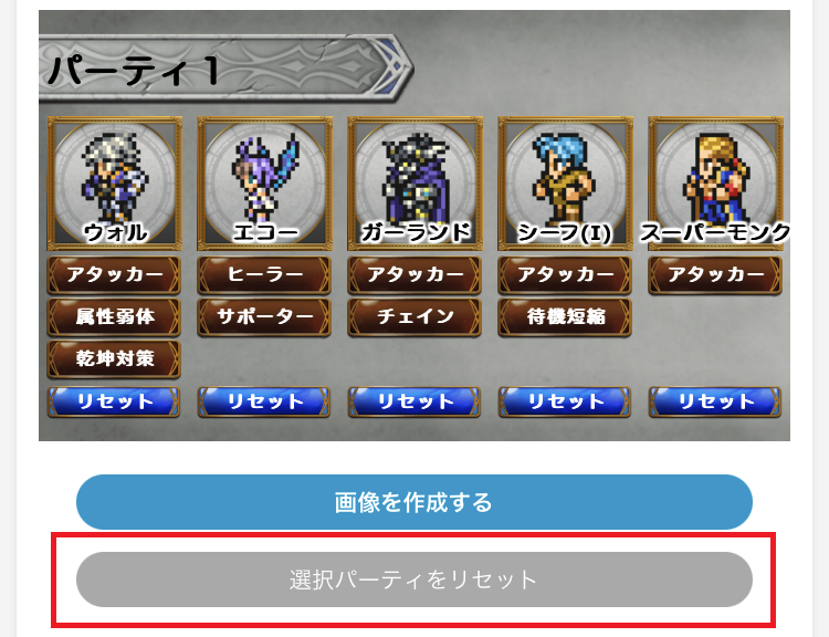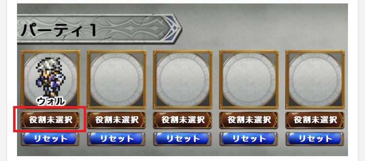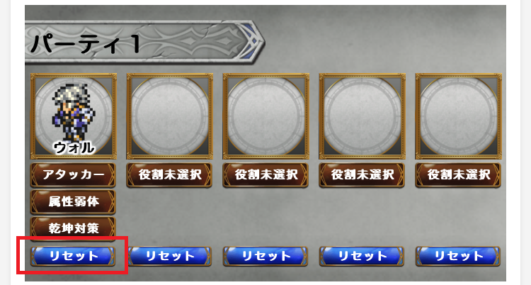 表示中のパーティの全キャラクターと役割をリセットする事が可能です。