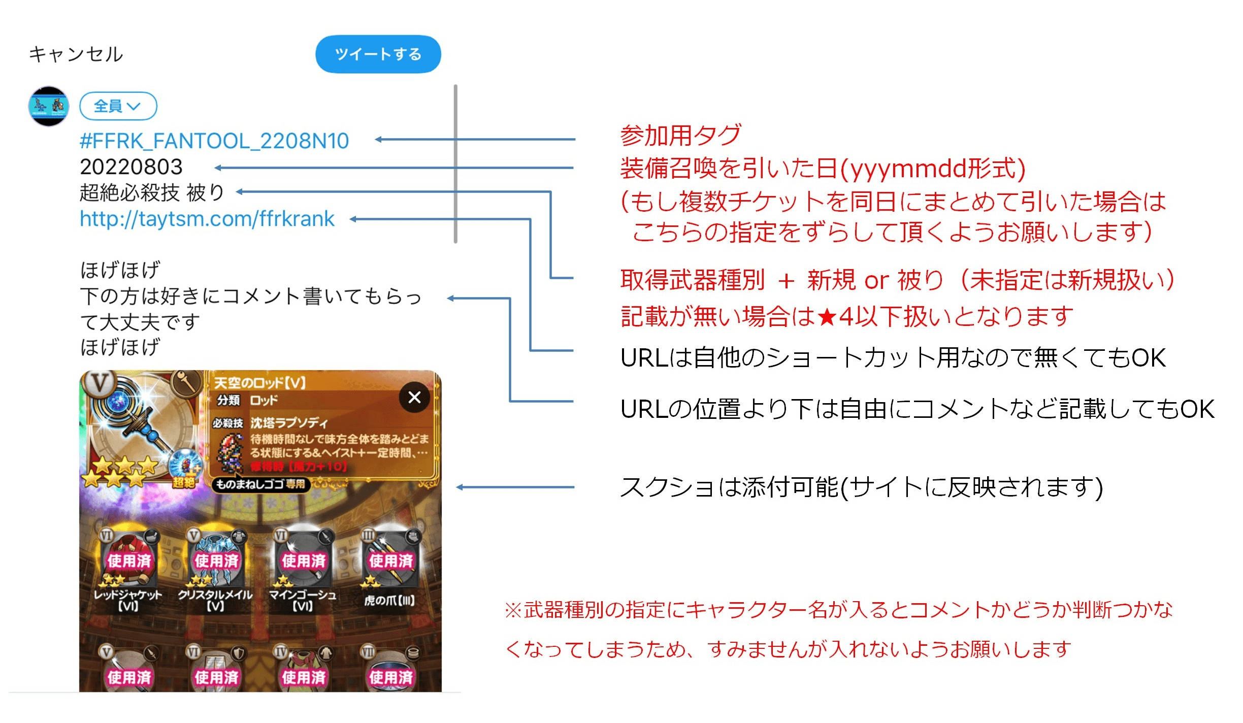 ※「エントリーはちょっと、、、」という場合はタグ(#FFRK_FANTOOL_2208N10)が無ければ集計されません